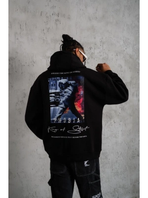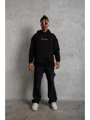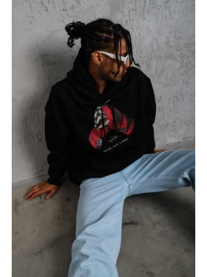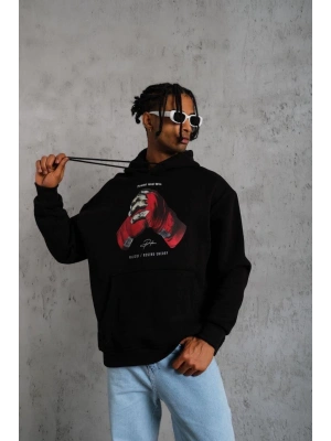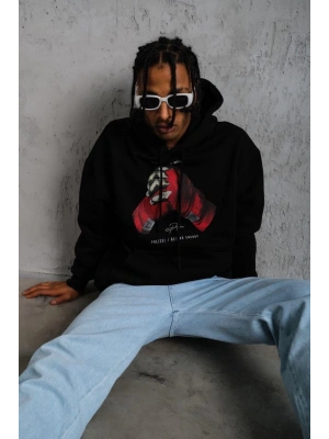 Erkek Eldiven Baskılı Kapüşonlu Sweat - Siyah