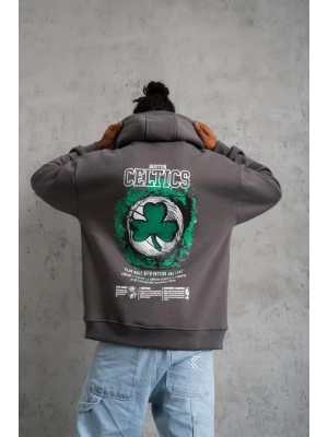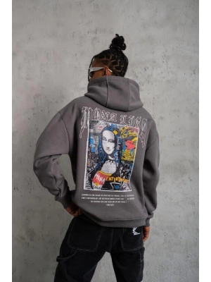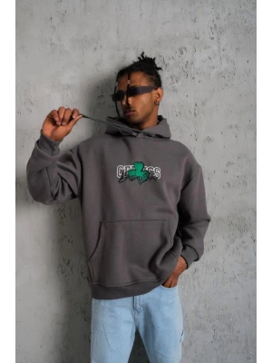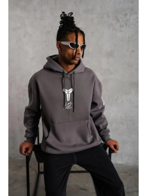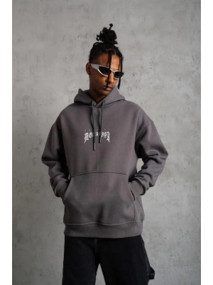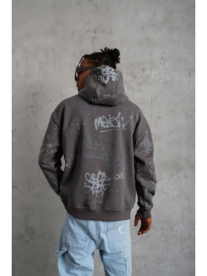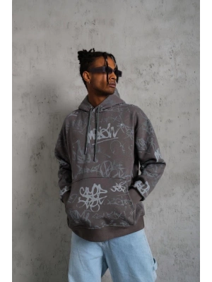 Erkek Baskılı Kapüşonlu Sweat - Gri