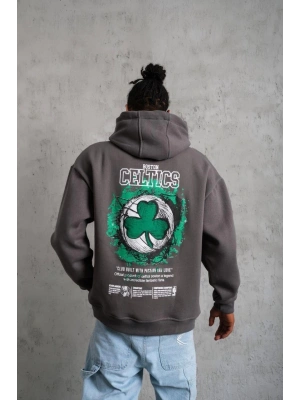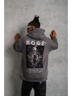 Erkek Baskılı Kapüşonlu ve Kanguru Cepli Sweat- Gri