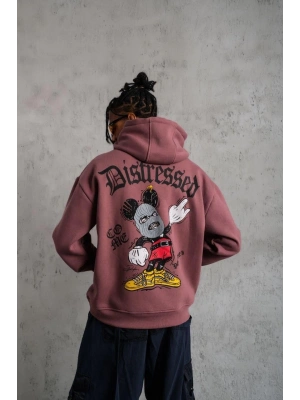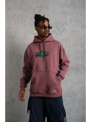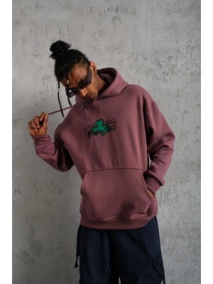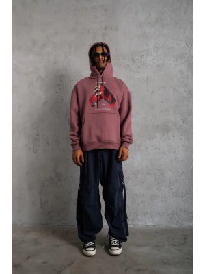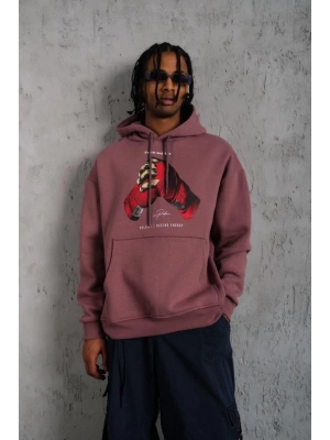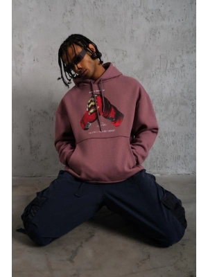 Erkek Eldiven Baskılı Kapüşonlu Sweat - Gül Kurusu