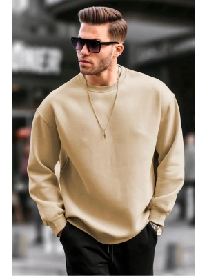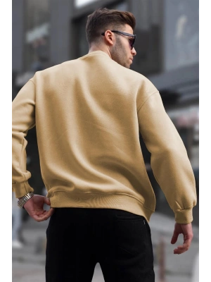 Erkek Düz Bisiklet Yaka Sweat - Bej