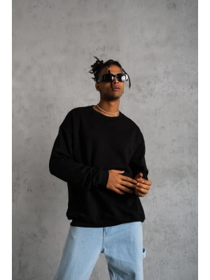 Erkek Düz Bisiklet Yaka Sweat - Siyah