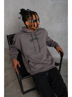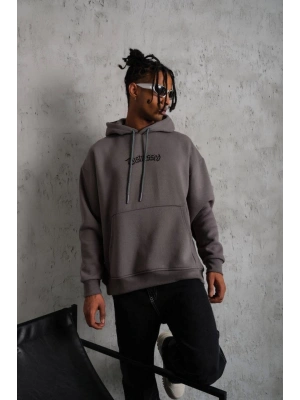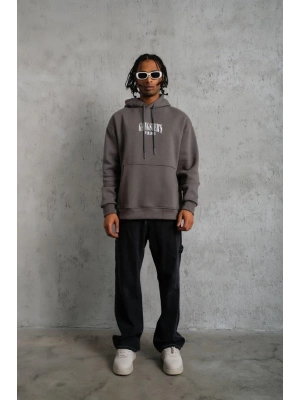 Erkek Üç İplik Baskılı Kapüşonlu Sweat - Gri