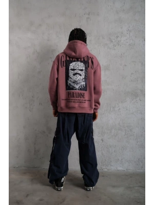 Erkek Paradise Baskılı Kapüşonlu Sweat - Gül Kurusu
