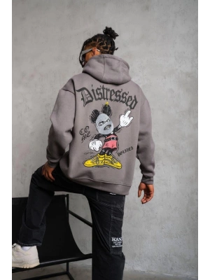 Erkek Kordonlu Maske Baskılı Kapşonlu Sweat - Gri