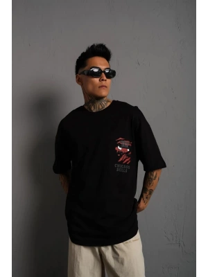 Erkek Sırt Baskılı Bisiklet Yaka Oversize T-shirt - Siyah